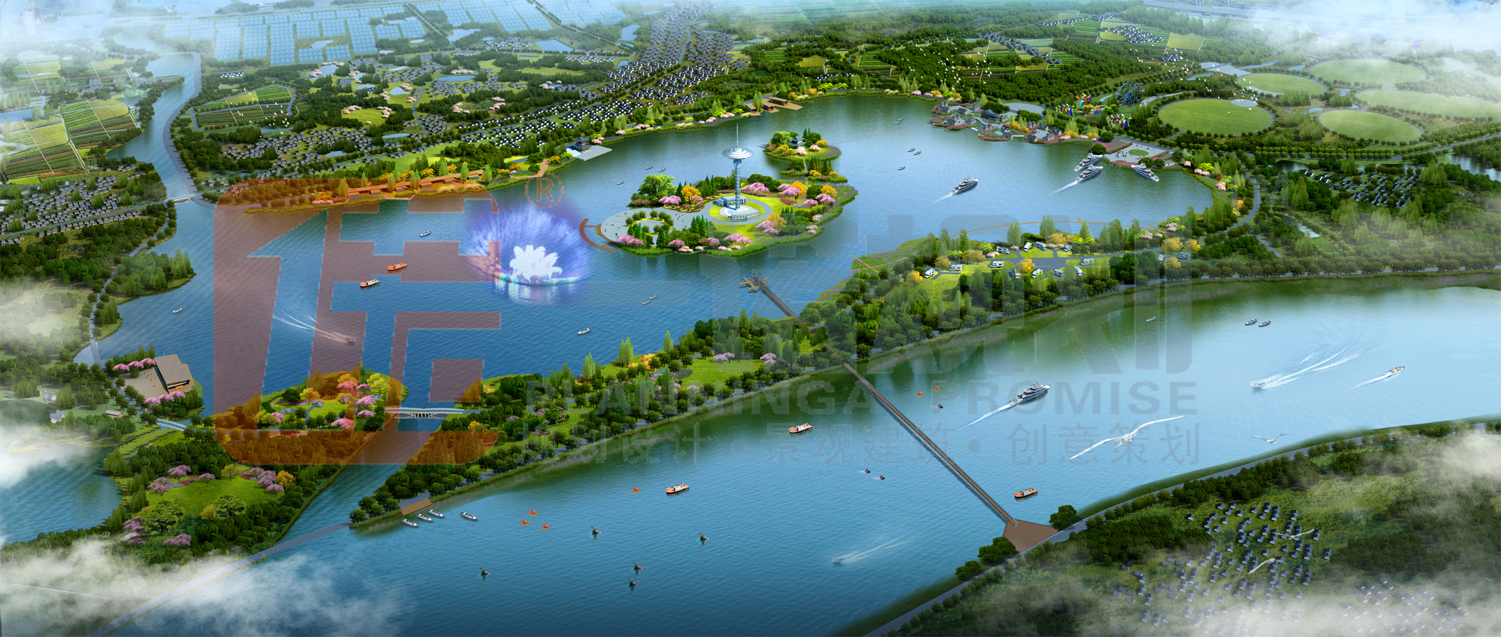 整個(gè)規(guī)劃圍繞“綜合接待服務(wù)、濱水游憩、農(nóng)業(yè)休閑體驗(yàn)、鄉(xiāng)村旅游觀光”的功能,以及考慮對(duì)外交通聯(lián)系方面的差異,農(nóng)業(yè)生產(chǎn)項(xiàng)目體系構(gòu)建規(guī)劃和休閑服務(wù)項(xiàng)目體系構(gòu)建規(guī)劃,結(jié)合規(guī)劃項(xiàng)目的發(fā)展定位和開發(fā)思路,將整個(gè)生態(tài)園區(qū)劃分為五個(gè)功能區(qū):濕地科技服務(wù)中心;一河兩岸景觀游憩帶;水趣田園體驗(yàn)片區(qū);美麗鄉(xiāng)村發(fā)展片區(qū);產(chǎn)業(yè)發(fā)展輻射片區(qū)。