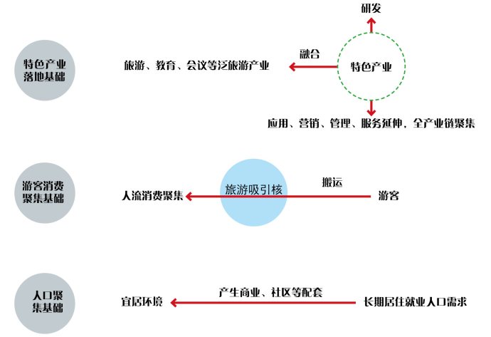 具有明確產業(yè)定位、文化內涵、旅游特征和一定社區(qū)功能的綜合開發(fā)體系。是單一的旅游景區(qū),或產業(yè)園區(qū),也不完全是建制鎮(zhèn),而是旅游景區(qū)、產業(yè)聚集區(qū)、新型城鎮(zhèn)化發(fā)展區(qū)三區(qū)功能合一、產城一體化的新型城鎮(zhèn)化模式。