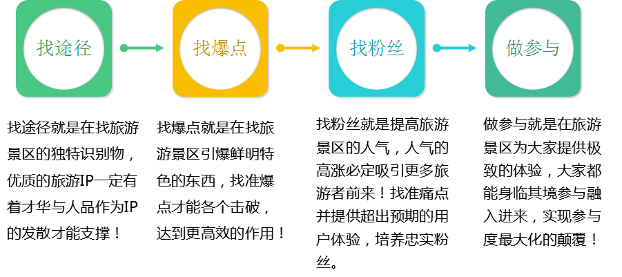 在“規(guī)劃——投資——運(yùn)營(yíng)——營(yíng)銷——服務(wù)”等農(nóng)旅項(xiàng)目生長(zhǎng)過(guò)程中始終將IP貫穿各個(gè)環(huán)節(jié)。